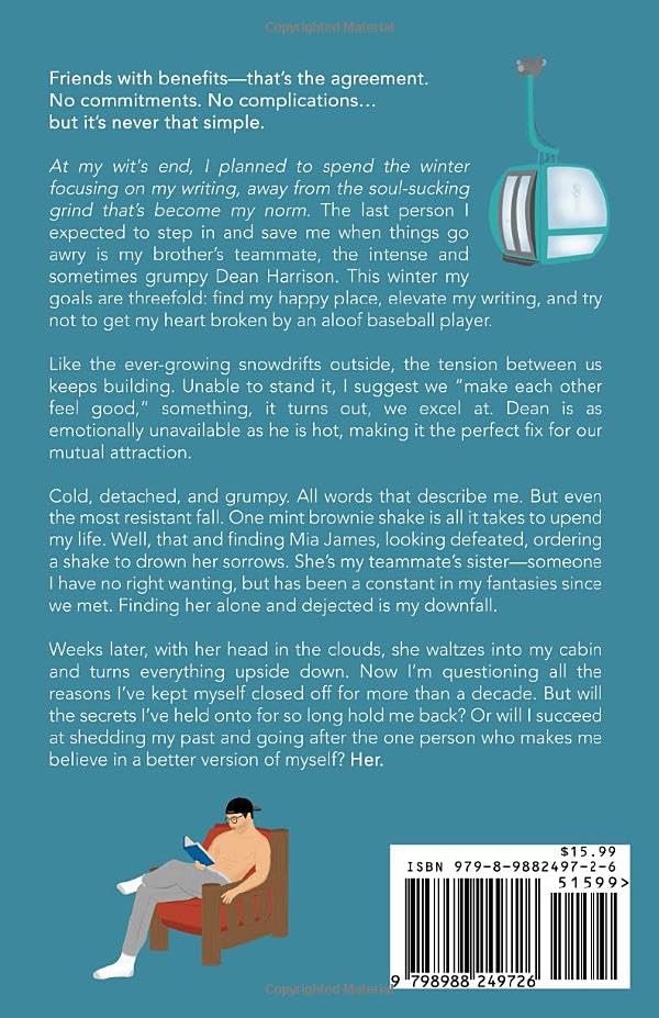 At my wit's end, I planned to spend the winter focusing on my writing, away from the soul-sucking grind that’s become my norm. The last person I expected to step in and save me when things go awry is my brother’s teammate, the intense and sometimes grumpy Dean Harrison. This winter my goals are threefold: find my happy place, elevate my writing, and try not to get my heart broken by an aloof baseball player.