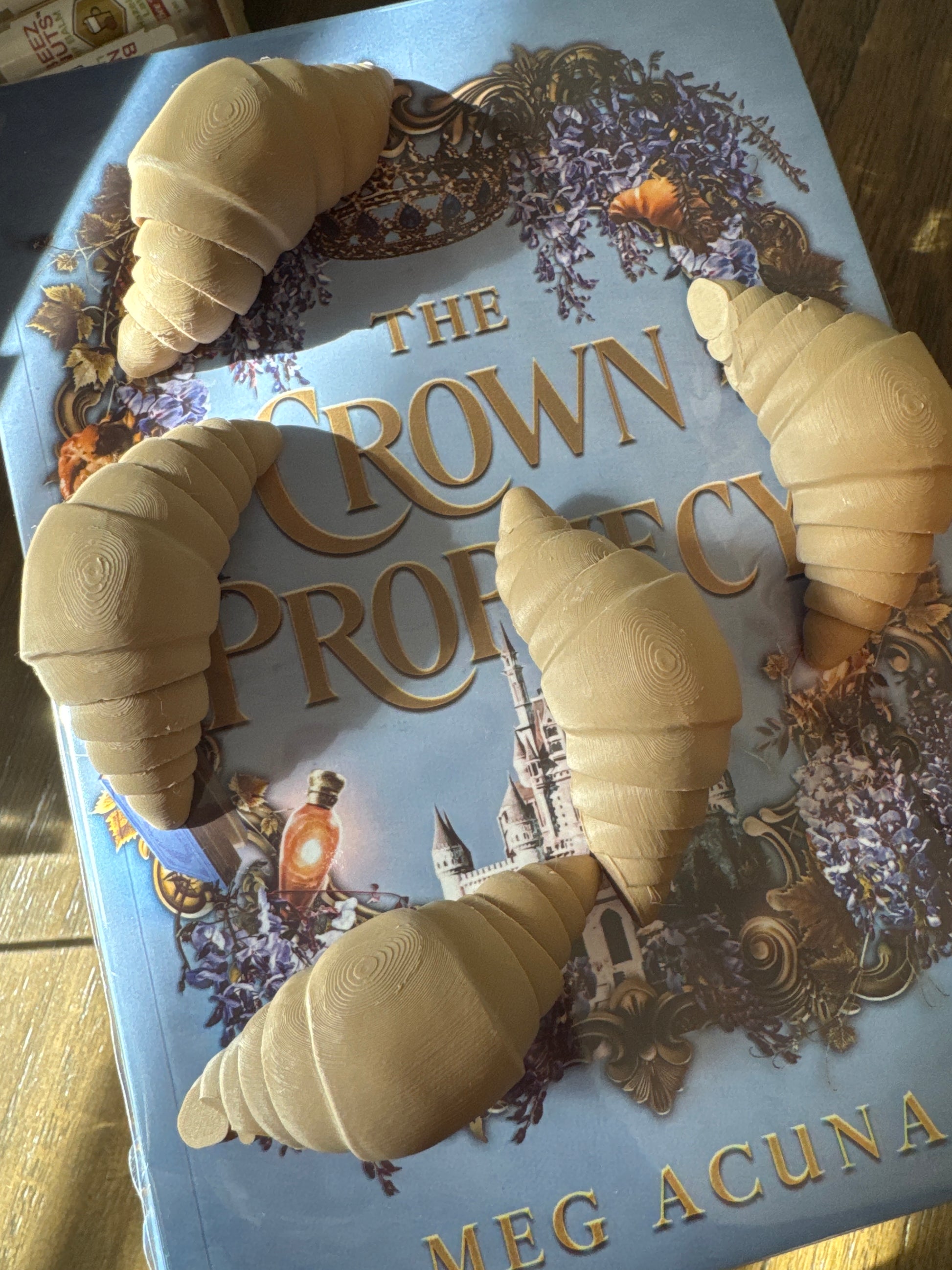 This is a signed copy of 'The Crown Prophecy' by Meg Aguna! (With Swag & 3D printed croissant)