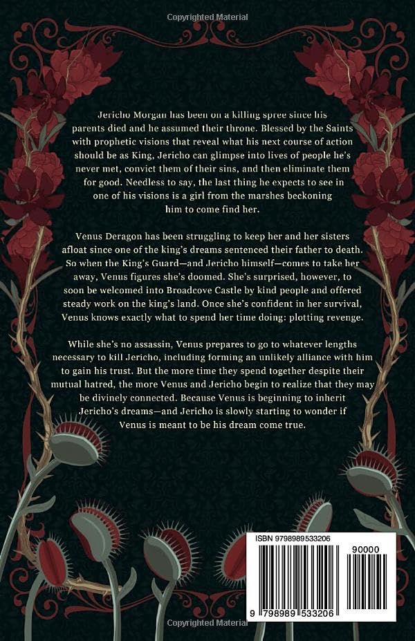 Venus Deragon has been struggling to keep her and her sisters afloat since one of the king’s dreams sentenced their father to death. So when the King’s Guard—and Jericho himself—comes to take her away, Venus figures she’s doomed. She’s surprised, however, to soon be welcomed into Broadcove Castle by kind people and offered steady work on the king’s land. Once she’s confident in her survival, Venus knows exactly what to spend her time doing: plotting revenge.