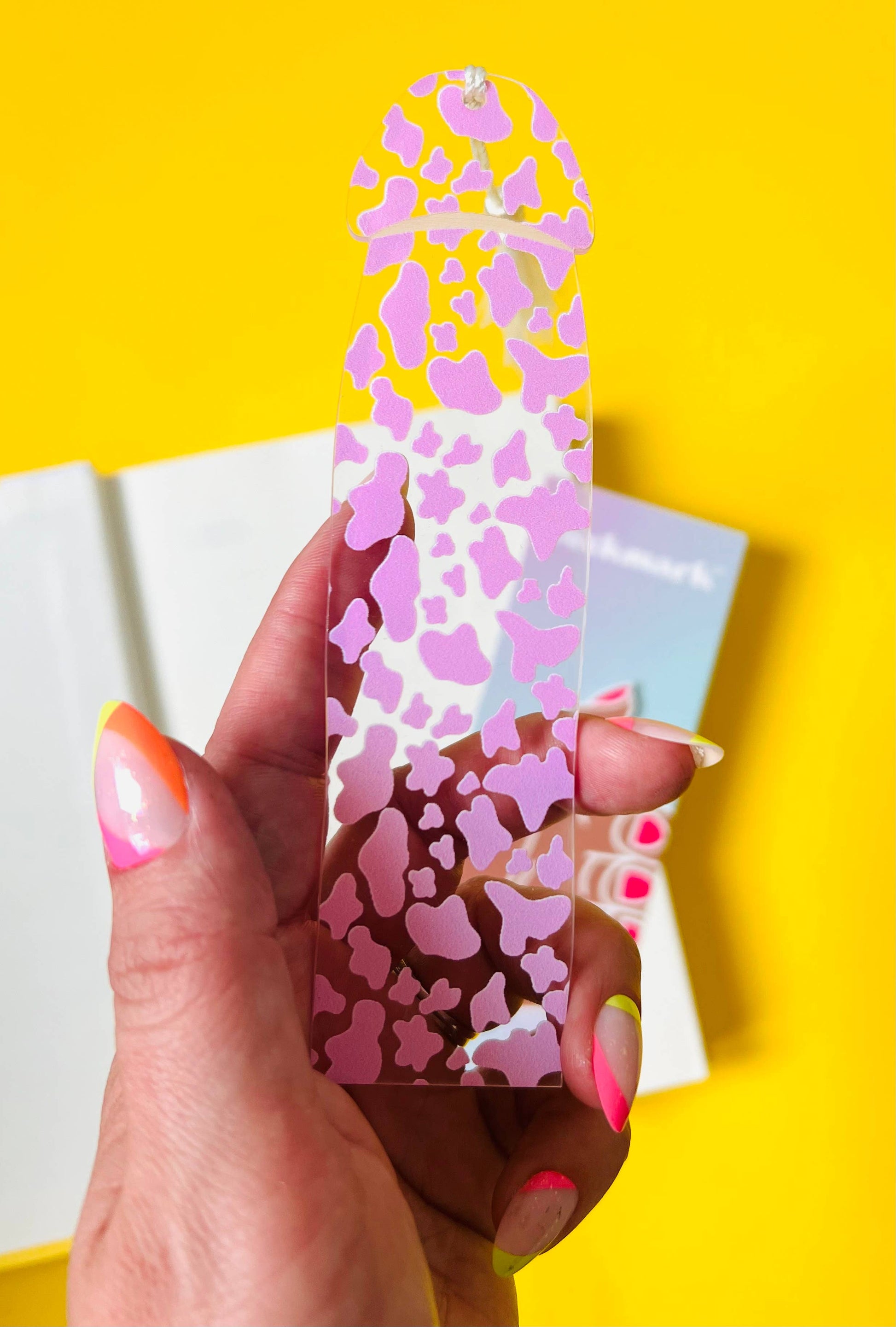Milking it dry. Yep. Clear acrylic Cockmark™ with a pink cow print. Splooging with a cream tassel and is set inside our hilarious hand packaging with a protective cellophane sleeve.
