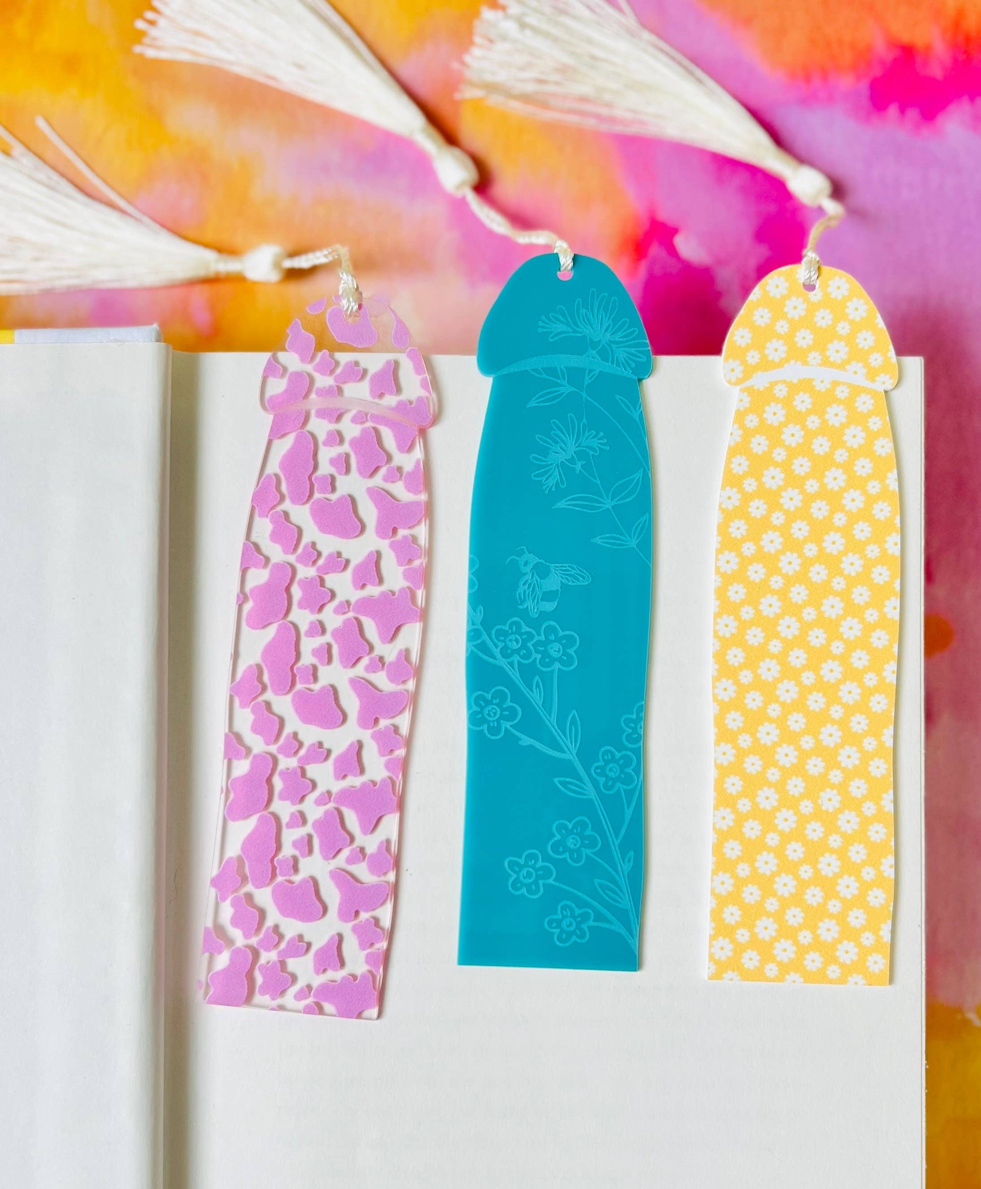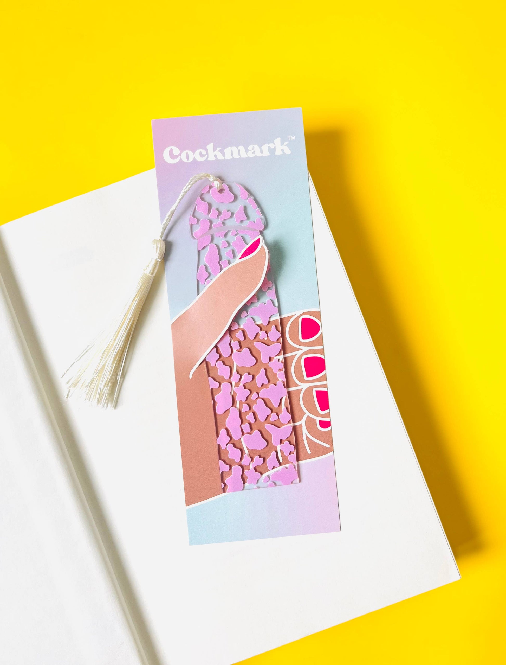 Milking it dry. Yep. Clear acrylic Cockmark™ with a pink cow print. Splooging with a cream tassel and is set inside our hilarious hand packaging with a protective cellophane sleeve.