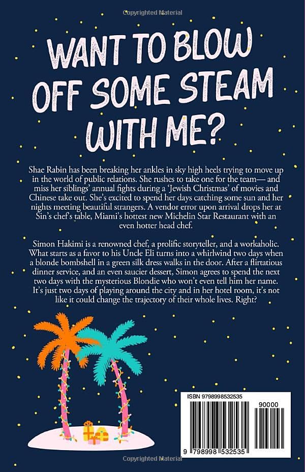 Shae Rabin has been breaking her ankles in sky high heels trying to move up in the world of public relations. She rushes to take one for the team— and miss her siblings’ annual fights during a ‘Jewish Christmas’ of movies and Chinese take out. She’s excited to spend her days catching some sun and her nights meeting beautiful strangers. A vendor error upon arrival drops her at Sin’s chef’s table, Miami’s hottest new Michelin Star Restaurant with an even hotter head chef.
