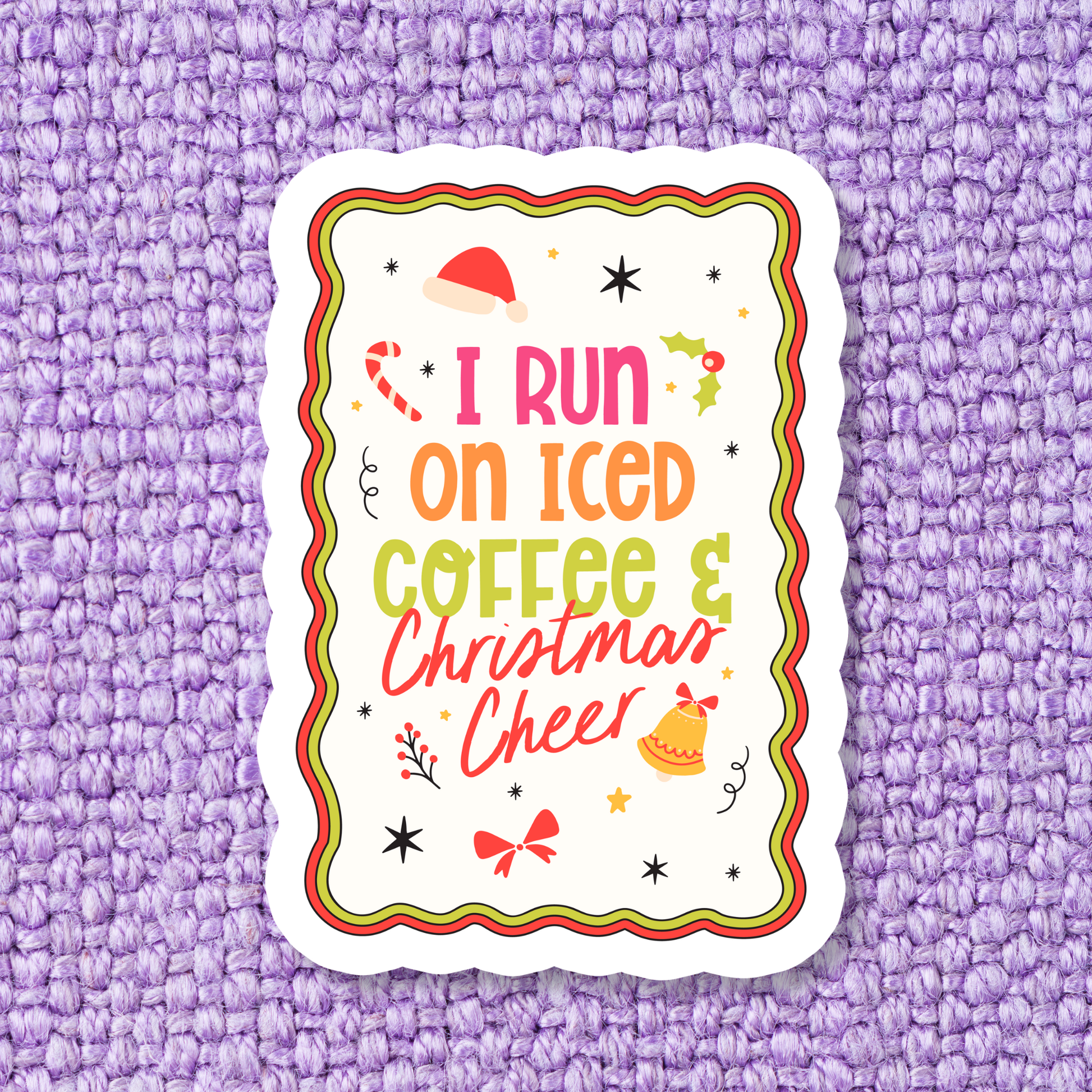 I Run On Iced Coffee & Christmas Cheer Waterproof Vinyl Sticker