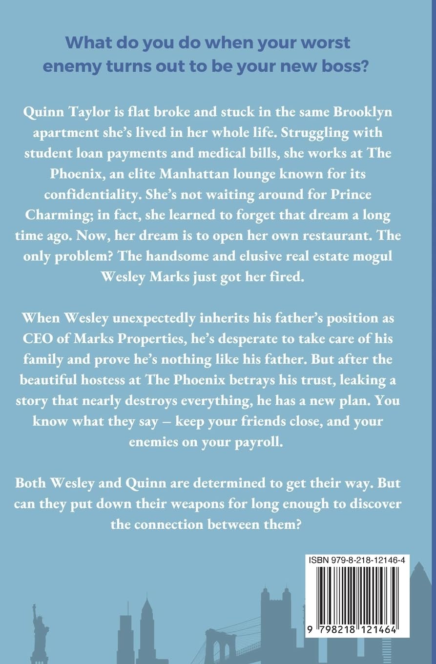 Quinn Taylor is flat broke and stuck in the same Brooklyn apartment she’s lived in her whole life. Struggling with student loan payments and medical bills, she works at The Phoenix, an elite Manhattan lounge known for its confidentiality. She’s not waiting around for Prince Charming; in fact, she learned to forget that dream a long time ago. Now, her dream is to open her own restaurant. The only problem? The handsome and elusive real estate mogul Wesley Marks just got her fired.