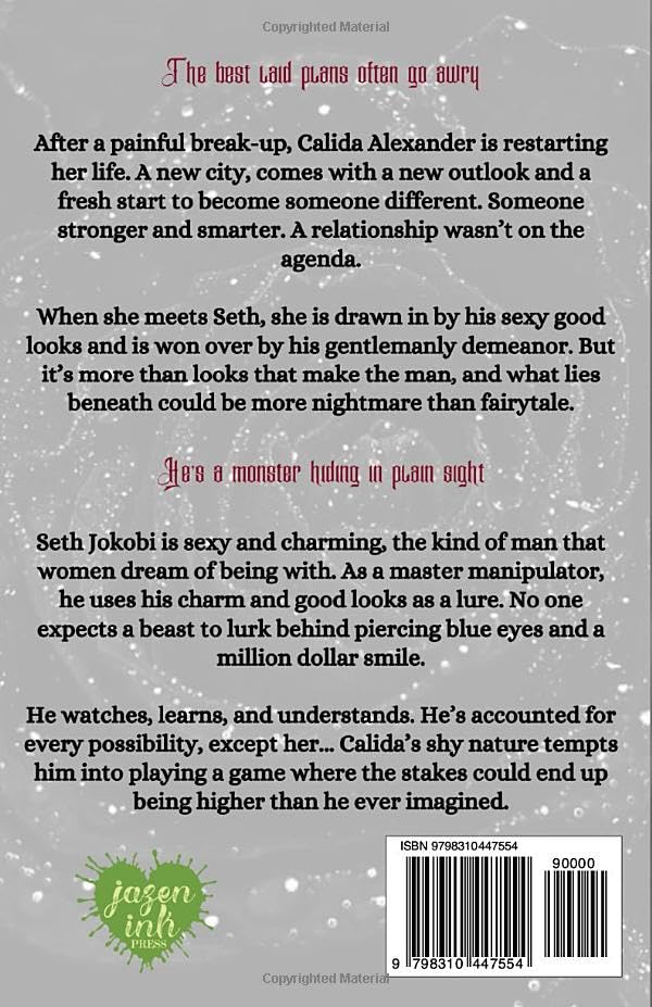 Seth Jokobi is sexy and charming, the kind of man that women dream of being with. As a master manipulator, he uses his charm and good looks as a lure. No one expects a beast to lurk behind piercing blue eyes and a million dollar smile.