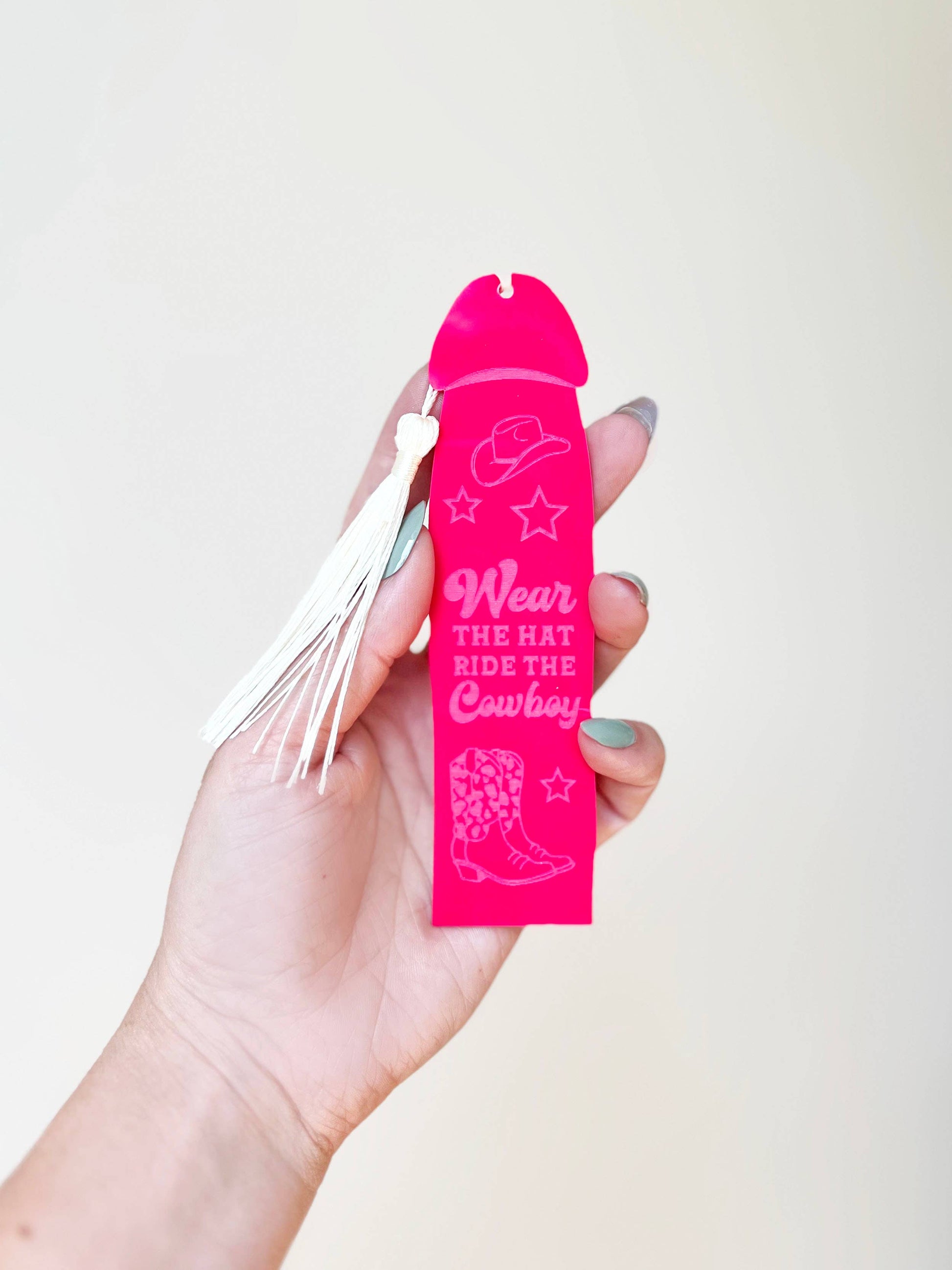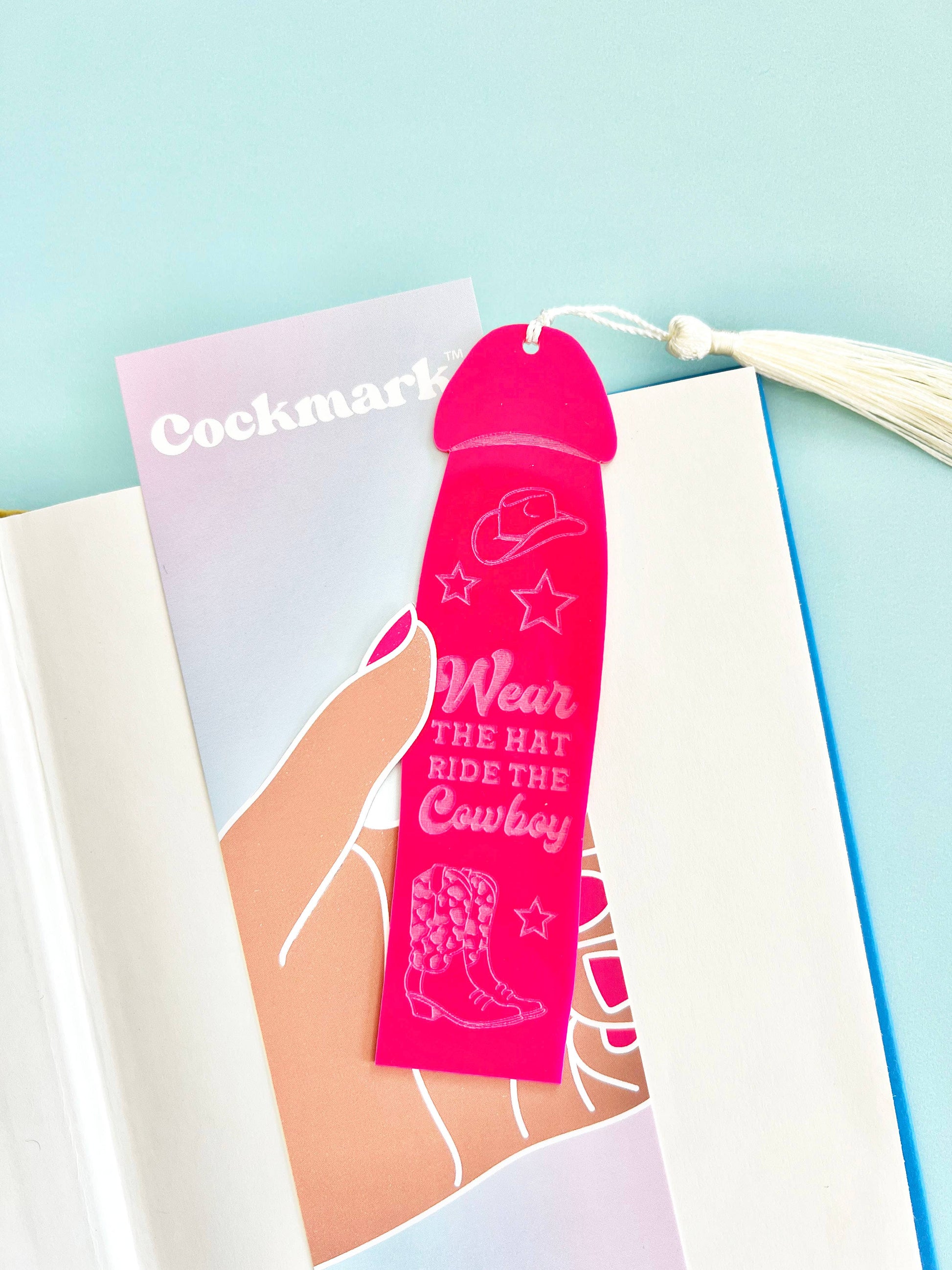 "Wear the hat, ride the cowboy!" Perfect hot pink acrylic Cockmark™ to match your Cowboy Romance obsession. 5.5" x 1.5" in signature Cockmark™ packaging with cellophane sleeve.