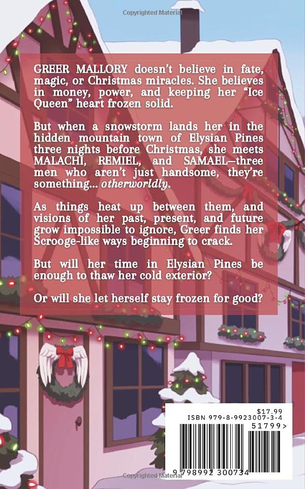 But when a snowstorm lands her in the hidden mountain town of Elysian Pines three nights before Christmas, she meets MALACHI, REMIEL, and SAMAEL—three men who aren’t just handsome, they’re something... otherworldly.