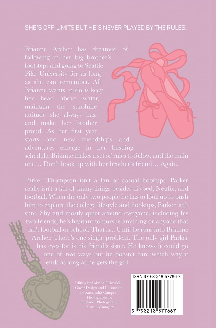 Brianne Archer has dreamed of following in her big brother's footsteps and going to Seattle Pike University for as long as she can remember. All Brianne wants to do is keep her head above water, maintain the sunshine attitude she always has, and make her brother proud. As her first year starts and new friendships and adventures emerge in her bustling schedule, Brianne makes a set of rules to follow, and the main one... Don't hook up with her brother's friend... Again.