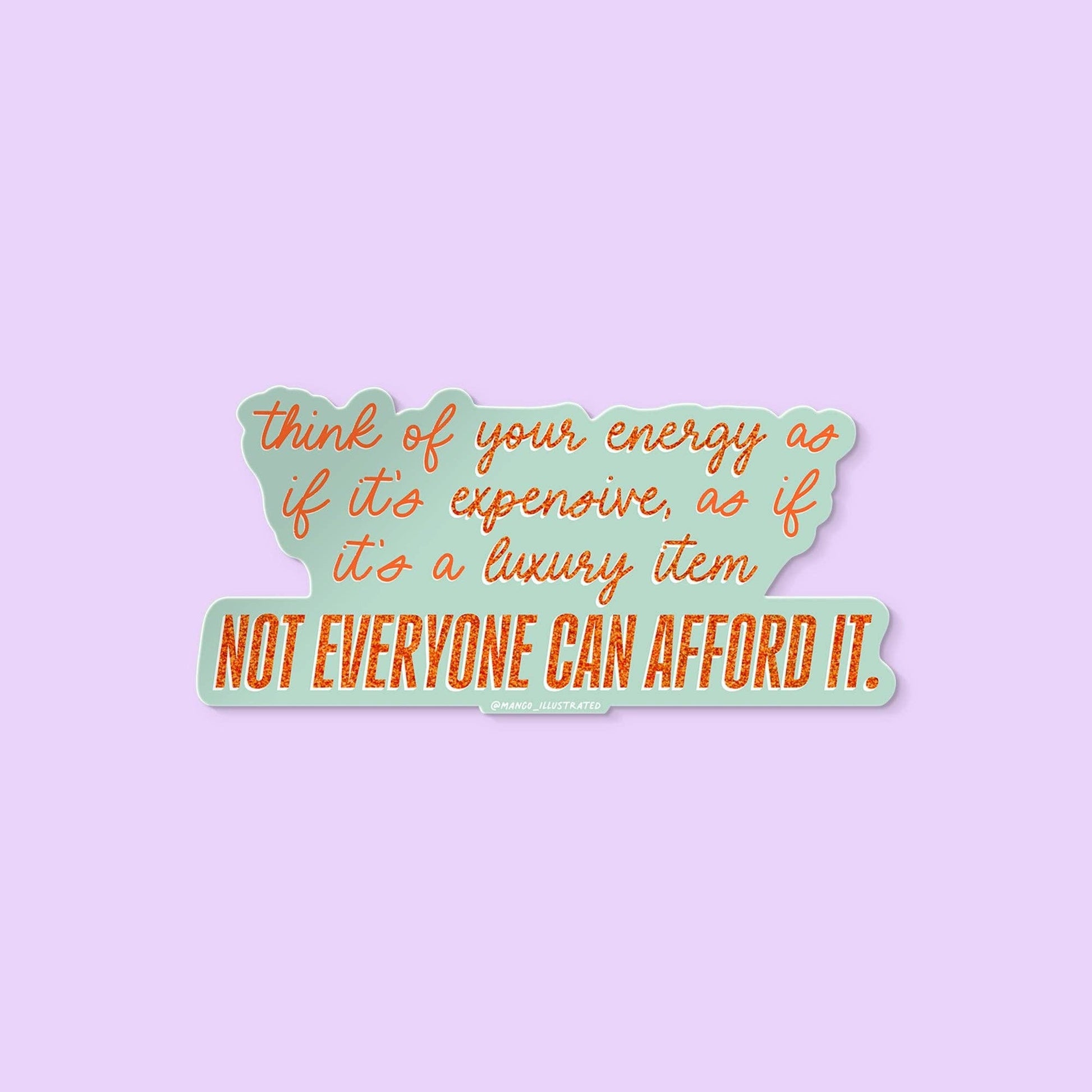 Honor your energy like the luxury it is with the “Your Energy is Expensive” Sticker. This bold vinyl sticker features the inspiring quote “Think of your energy as if it’s expensive, as if it’s a luxury item. Not everyone can afford it” — a glitter-styled reminder to protect your peace and set boundaries unapologetically.
